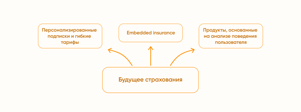 встроенное страхование (embedded insurance), когда полисы интегрируются прямо в продукты и услуги;