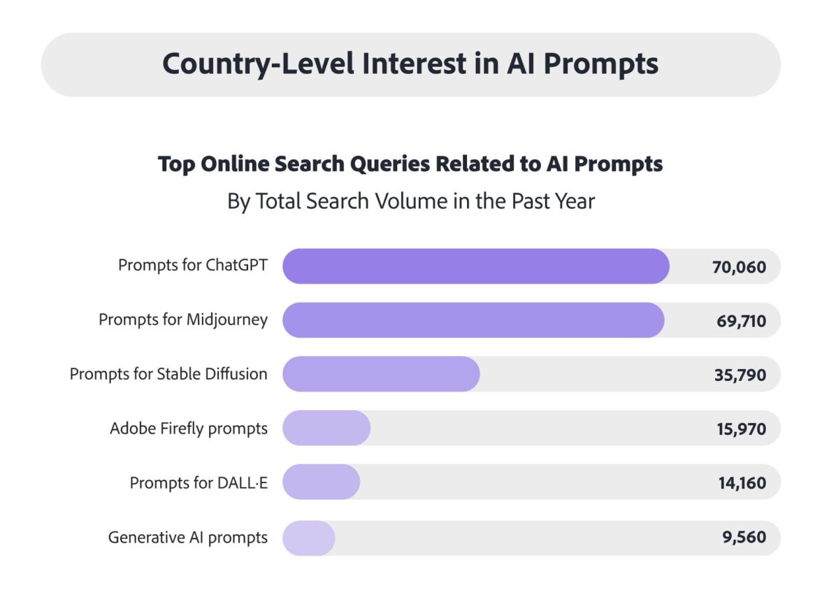 По данным исследования Adobe Express, в 2024 году количество поисковых запросов о том, как составить промпт, выросло на 20% среди 5 тыс. пользователей по всему миру.