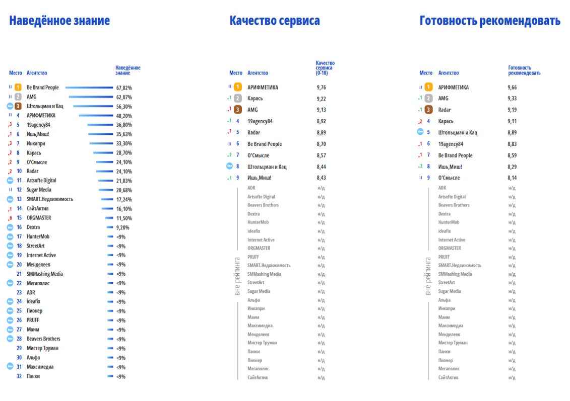 По оценке уровня клиентского сервиса лидирующие позиции заняли компании «Арифметика», «Карась», AMG, 19agency84 и Radar.
