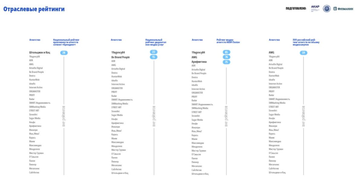 Лидеры рейтинга агентств на основе опроса рекламодателей