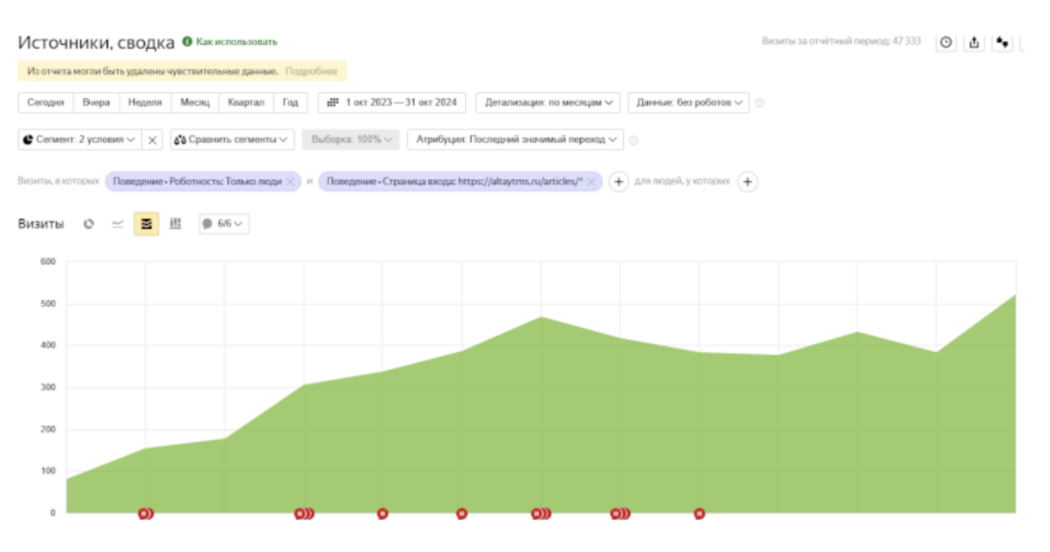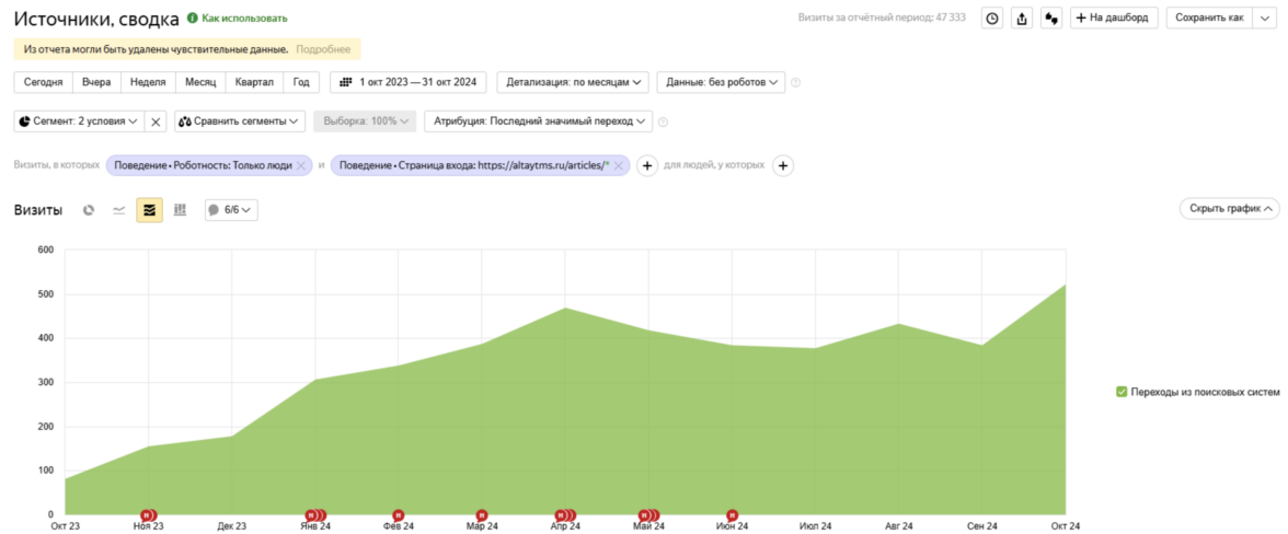 Трафик из поисковых систем в блог с 01.10.2023 по 01.10.2024