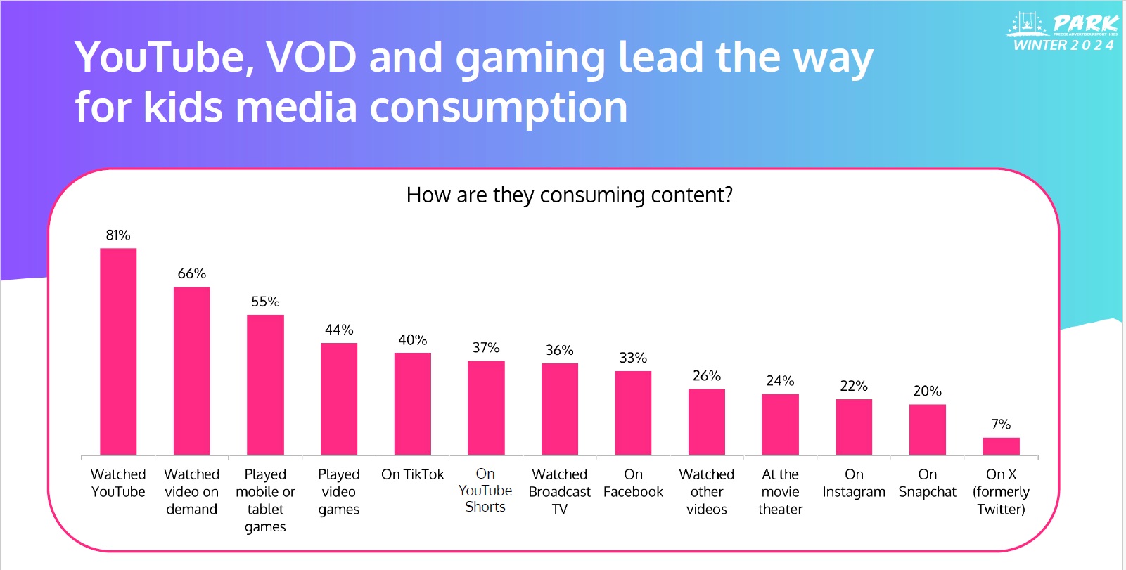 Тематику доклада PARK его авторы определяют так: «Полная картина потребления видеоконтента детьми поколения “Альфа” в США (возраст от 2 до 12 лет) в 2024 году».