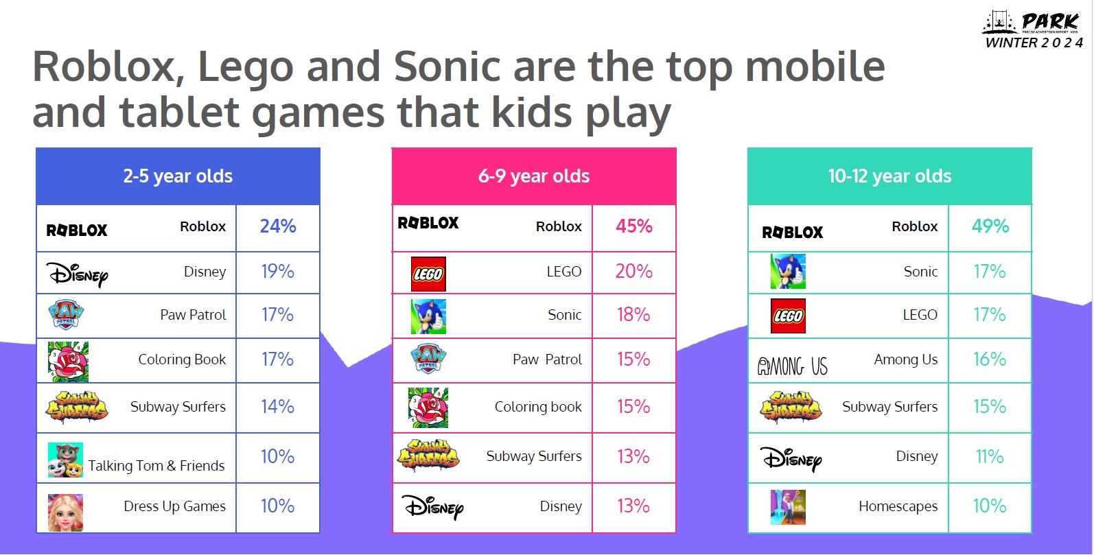 У 10-12 летних Lego и Sonic одинаково популярны. У представителей данной возрастной категории большой популярностью пользуются также игры Among Us (смесь детектива с фантастикой) и Homescapes российско-ирландской компании Playrix (про дворецкого Остина, восстанавливающего фамильный особняк).