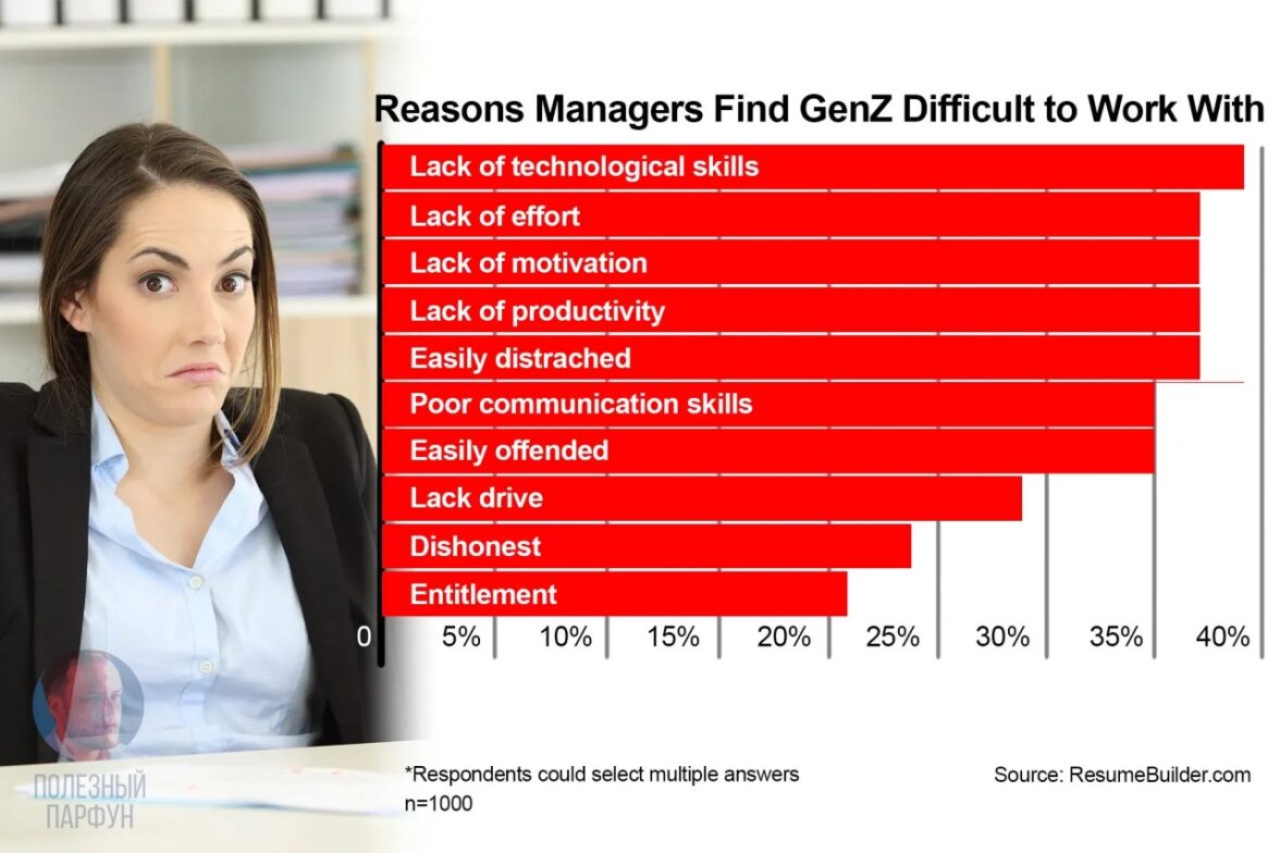 А вот New York Post прямым текстом вывалил на читателей результаты исследования, в котором так и сказано: почти половина (49%) из более чем тысячи респондентов заявила, что работать с поколением Z сложно «всё время или большую часть времени», и ещё ошеломляющие 79% называют его в самым трудным в работе.