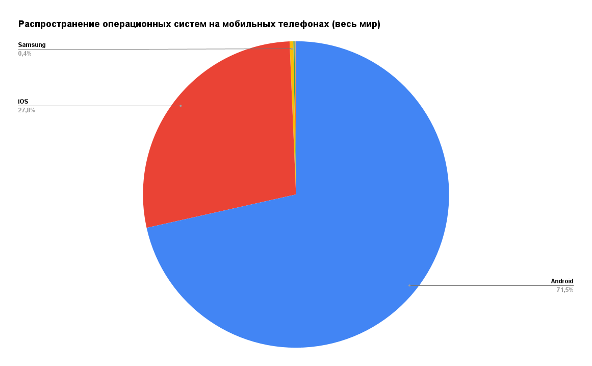 Распространение операционных систем на мобильных телефонах (весь мир).
