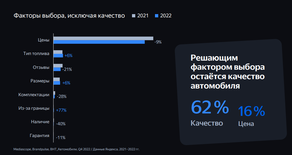 Однако качество остается решающим фактором при выборе автомобиля, вторым является цена. Низкий уровень доверия к малоизвестным китайским брендам и их высокая стоимость остаются главными преградами для успешного вхождения на рынок.