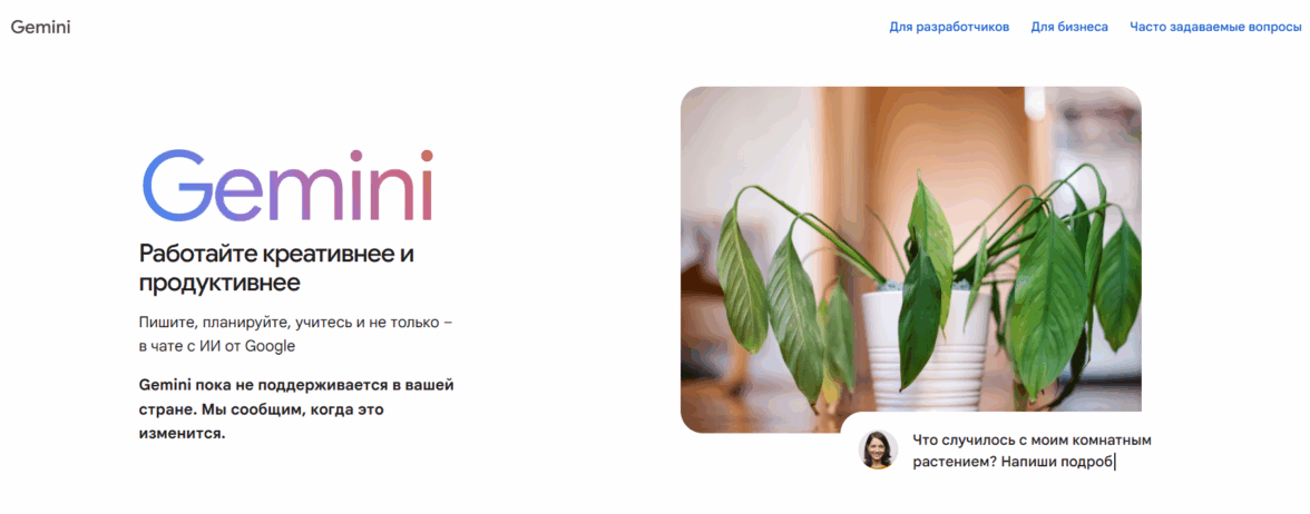 Gemini – универсальный ИИ от Google, генерирует изображения высокого качества с отличным пониманием сложных сцен, текста в кадре и стилей, работает в браузере.
