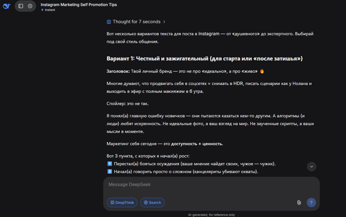 DeepSeek используют не просто как «чат-бота для вопросов-ответов», а как полноценный инструмент для конкретных рабочих и повседневных задач.