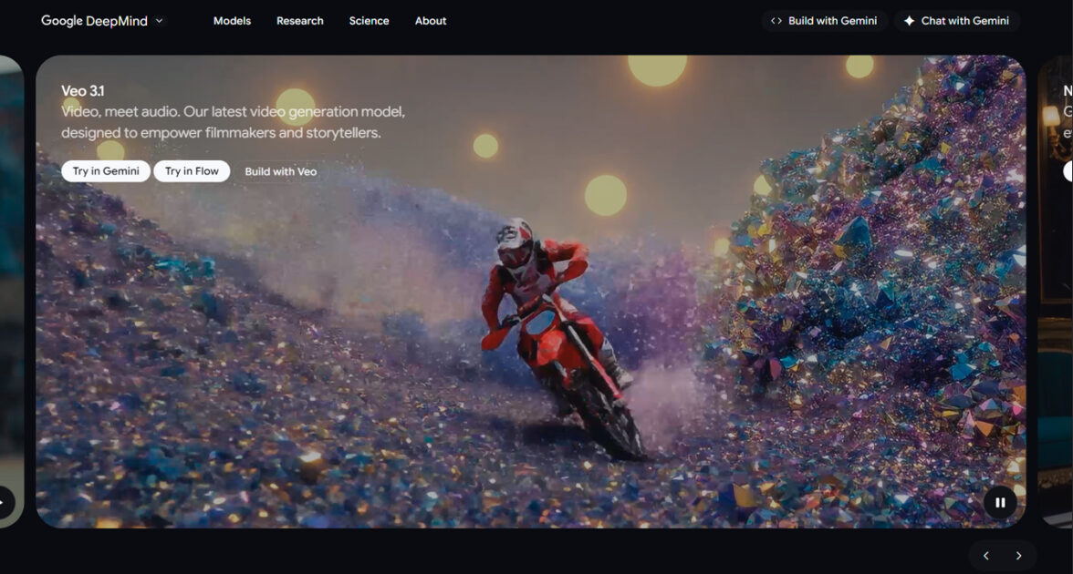 Передовая нейросеть от Google DeepMind, предназначенная для генерации видео из текстовых запросов или изображений с реалистичной физикой, движением и синхронизированным звуком, что делает ее мощным инструментом для создания коротких клипов. Она поддерживает различные модели (включая Veo 3.1), которые могут создавать видеоролики с аудио и динамическими элементами на основе описаний. Veo интегрирована в такие продукты, как Gemini и Flow, и предлагает гибкие способы использования как через подписки, так и через API‑доступ. Благодаря поддержке нативного аудио, кинематографическому качеству и адаптации к различным типам промптов, Veo подходит как для профессиональных задач, так и для быстрых прототипов.