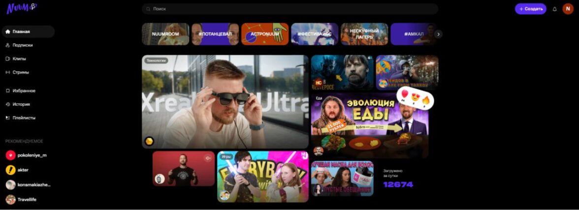 NUUM проводит различные челленджи и делает спецпроекты, чтобы мотивировать пользователей создавать больше роликов. А рост количества контента (особенно уникального) стимулирует рост аудитории. Пока здесь нет каналов с многомиллионным количеством подписчиков и больших просмотров, работа ведётся в бета-версии. На данный момент для брендов это малоконкурентная площадка на перспективу.