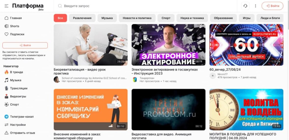 Темы видео разделяются по направлениям: развлечения, новости, музыка, новости и политика, спорт, образование, игры и так далее. На платформе разнообразный контент, но есть нюанс — строгая модерация, которая следит, чтобы видео не противоречили российскому законодательству. Хотя ютуб видеохостинг тоже отличается особыми правилами публикации контента. Поэтому маркетологам будет несложно перестроиться и продолжить вести свою деятельность на новой площадке.