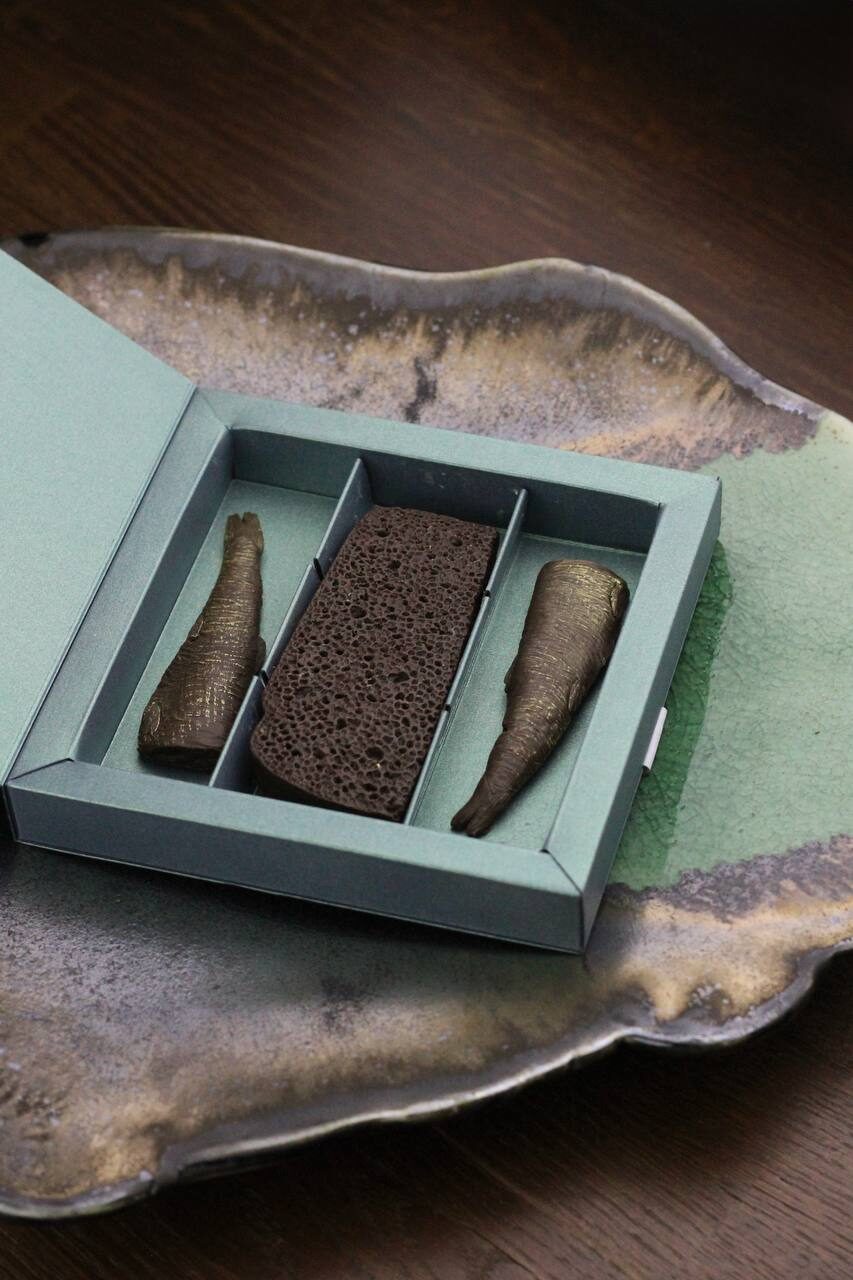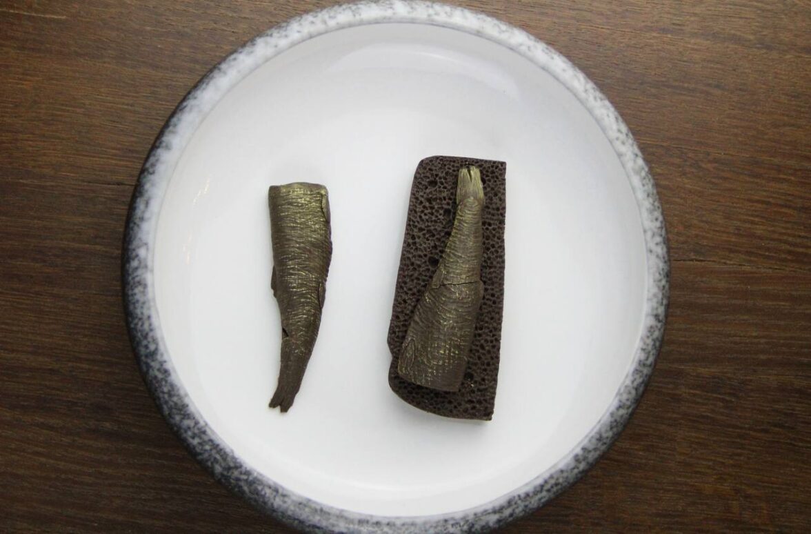 Автор идеи: Елена Купцова, шеф-повар ресторана Dolce Vita, Калининград. Старший маркетолог Dolce Vita: Виолетта Кошевая. Мы считаем, что килька — это некий бренд Калининградской области, поэтому пришла идея выразить и реализовать ее как-то необычно. А так как марципан тоже глубоко вплетен в код Калининградской области, мы решили объединить эти два Калининградских продукта и сделать десерт из марципана в виде бутерброда — бородинский хлеб со шпротами. Десерт из марципана в виде бутерброда — Марциброд