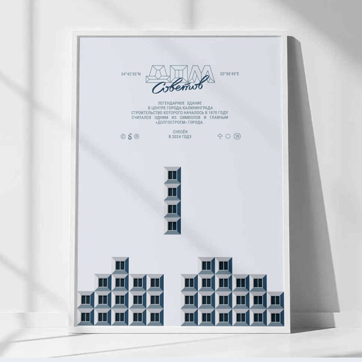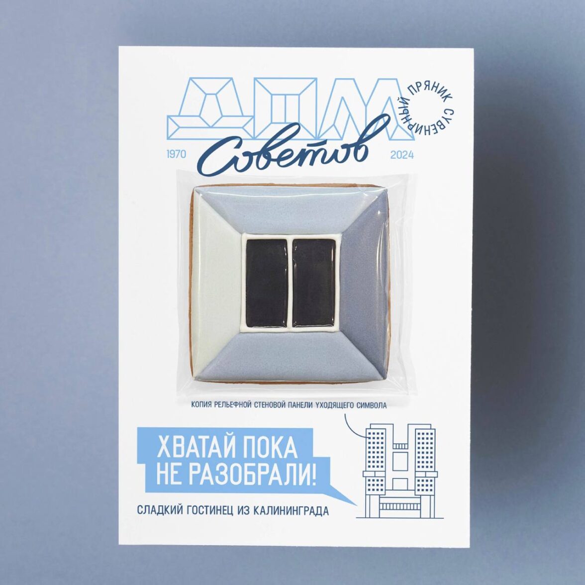 Авторы: Евгений Шишкарев и Анастасия Пателят, студия Slowwwno, Калининград. Пока разбирали Дом советов — мы печатали открытки, постеры, стикеры, принты на футболках, шили шопперы, пекли пряники с уходящим символом Калининграда. Памятный мерч — пожалуй это всё, что от него осталось.Награды: Лучший гастросувенир Калининградской области 2024”, серебряный призер”Х Международной Биеннале Балтийский дизайн 2024» в номинации «мерч», победитель (1 место) дизайн фестиваля Dprofile Award 2024 в номинации «Лучшая графика», Первое место в Мерч.Премии 2025 от Таврида.Арт в двух номинациях «лучшая айдентика» и «народный выбор», первое место во всероссийском конкурсе «Творить в России» в номинации «дизайн».