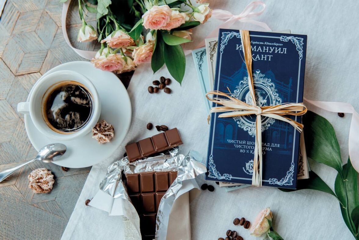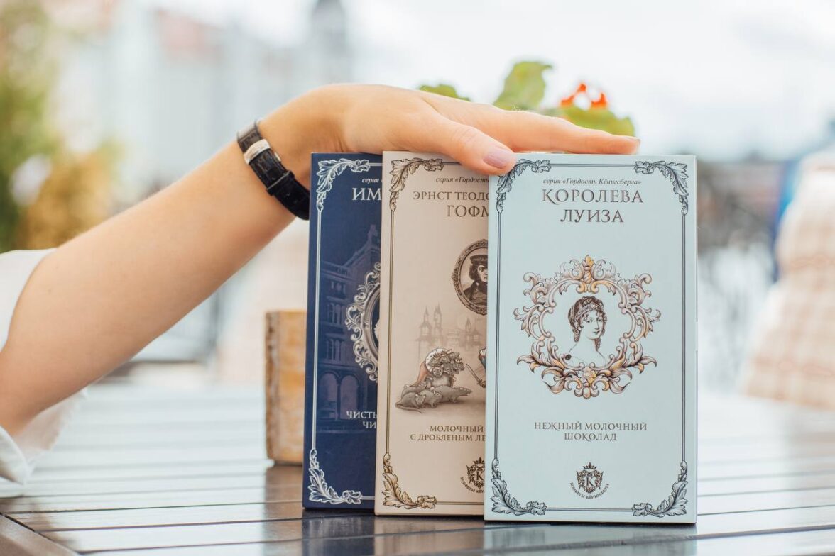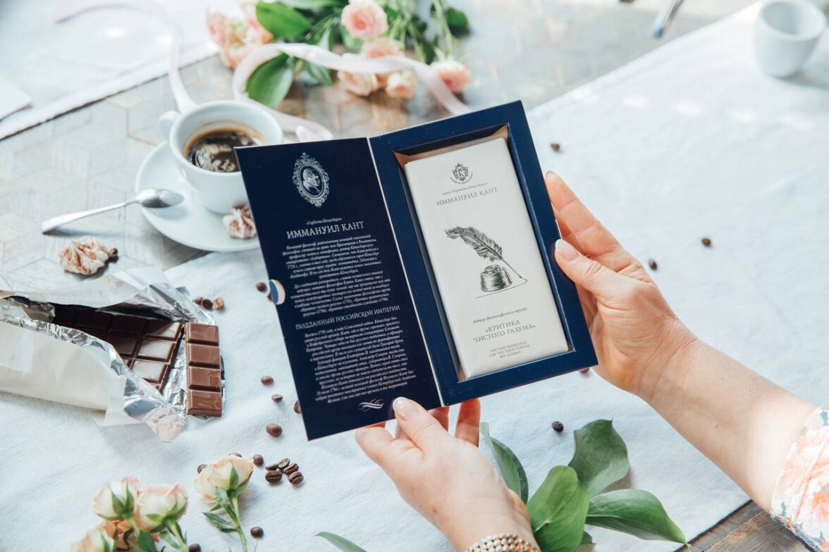 Автор: Анна Яни, брендинговое агентство YANICODE, Калининград. Тематический сувенирный шоколад выполнен в виде книжного томика. Этот историко-культурный проект в легкой манере, рассчитанный на современное клиповое мышление, знакомит гостей Калининграда с великими людьми которые жили здесь до нас и вошли в мировую историю, рассказывает интересные факты о них, знакомит с городскими легендами. И все это в привязке к Российской истории и культуре. Каждая упаковка содержит информацию об объектах культурного наследия по каждой из тем, которые можно посетить и сейчас. «Конфеты Кенигсберга» — вкусные истории о людях и городе! Для одной из самых читающих наций в мире.