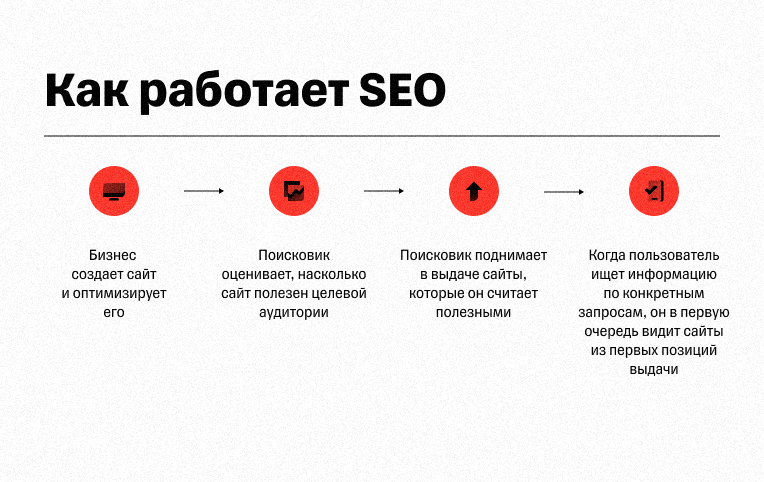 SEO — это когда пользователи заходят на сайт из поиска Яндекса или Google. Чтобы сайт был выше в поиске и на него чаще переходили, его нужно грамотно настроить и продвигать