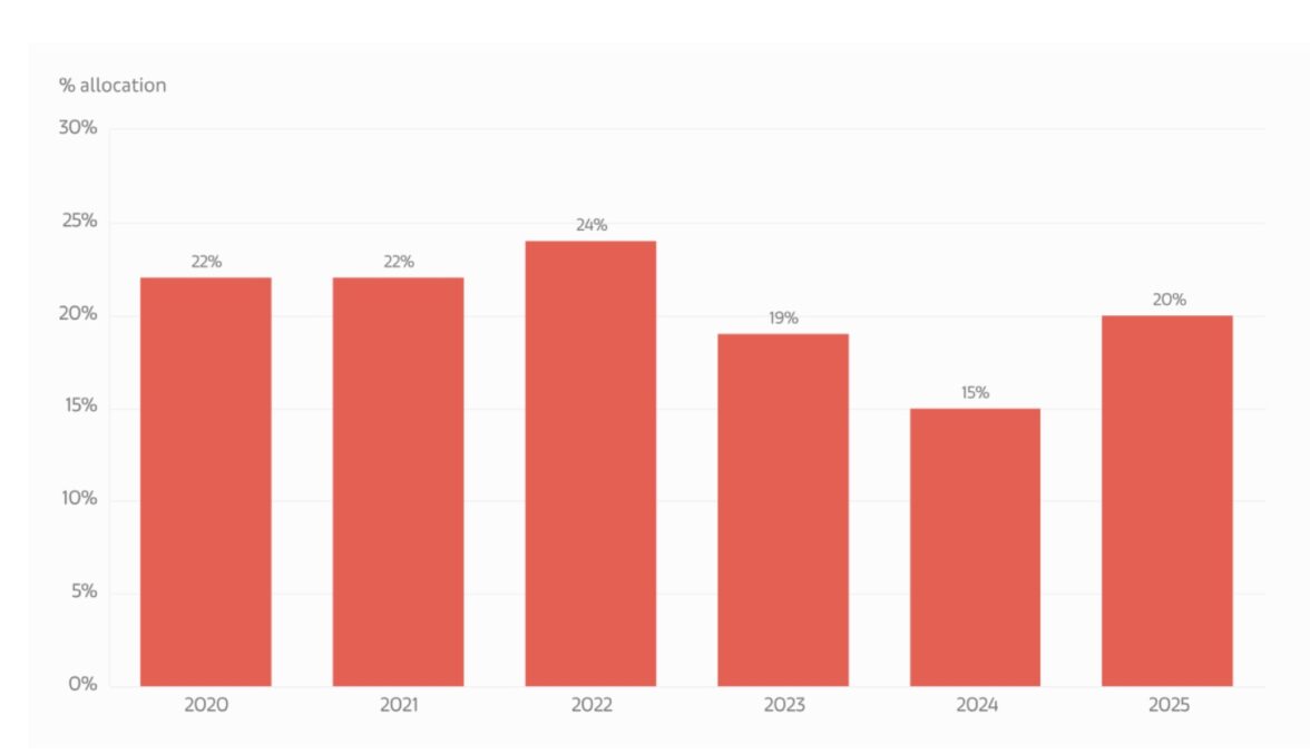 Люди с высоким достатком, они же лица с крупным капиталом, они же хайнеты (high-net-worth-individuals, HNWI), чей личный свободный капитал превышает $1 млн, вкладывают в коллекции значительную часть своего состояния. По сравнению с прошлым годом — больше. В 2025 году на коллекции приходилсь 20% их состояния, год назад — 15%.