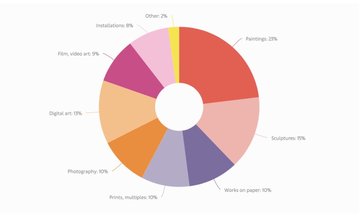 Женщины также склонны к тому, чтобы инвестировать в работы художниц, помогая тем самым сократить гендерный разрыв. Женщины тратили на работы художниц в среднем 47% от общих расходов на искусство, тогда как мужчины — 41%.