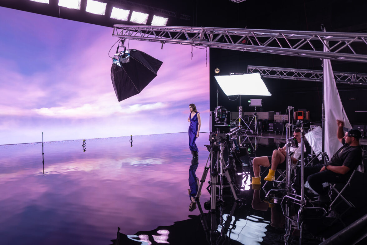 Для реализации проекта использовались технологии virtual production с применением LED-стены и 3D-рендеринга в реальном времени, реализованные командой SberStudios. В павильоне была построена гибридная сцена: физический неглубокий бассейн с чёрным дном для создания идеальной водной поверхности и LED-экраны, на которые команда virtual production выводила динамичное фотореалистичное небо.