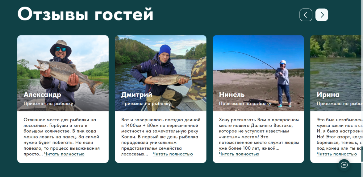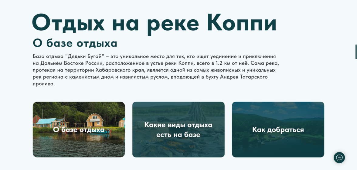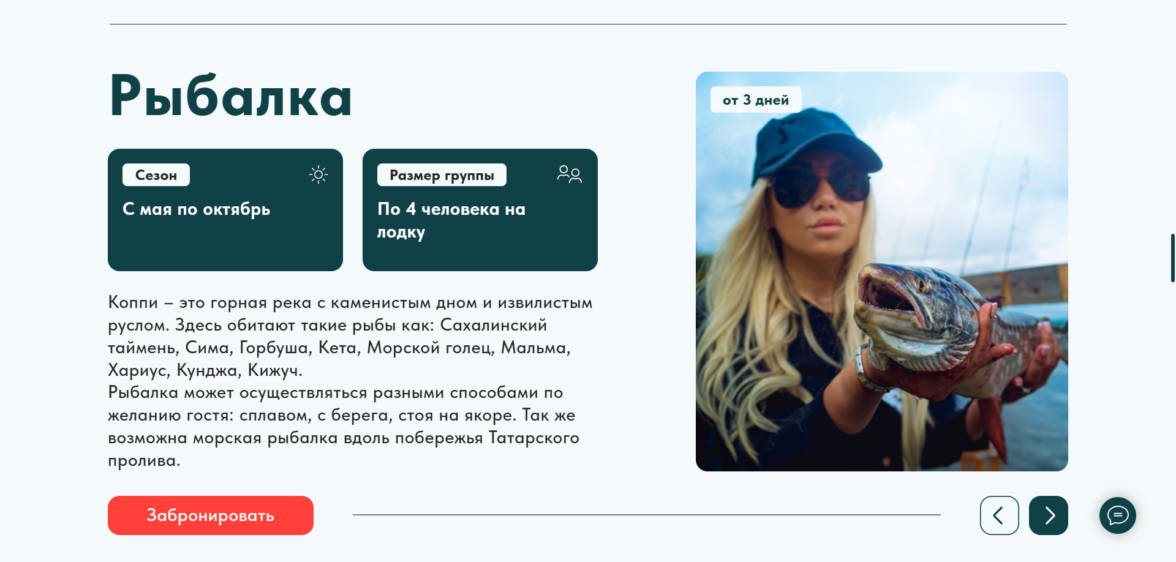 Описание каждого вида отдыха — отдельно представили каждый тип отдыха с указанием сезонности и необходимых групповых ограничений. Мы сделали это не только из эстетических соображений. Так можно без лишних затрат на верстку отключить один из них, когда он не актуален. Причём клиент легко справится сам — мы записали видеоинструкцию.