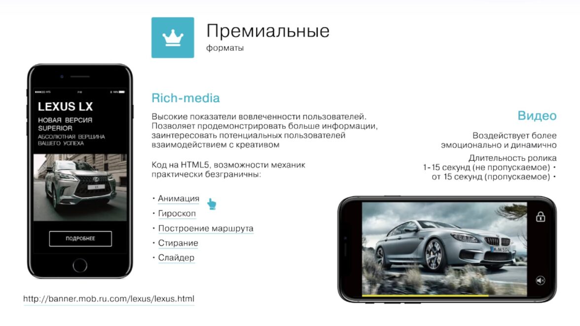 Для этого как нельзя лучше подойдут премиальные форматы — Rich media, rewarded video и другие. Их уже выбирают представители мировых автобрендов в России и странах СНГ.