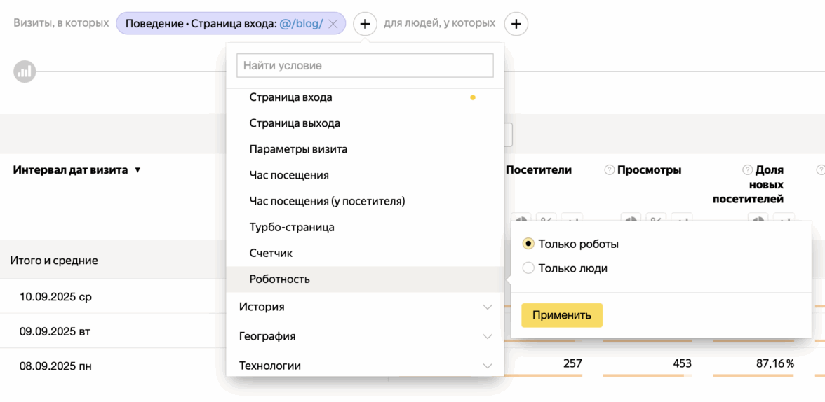 Killbot фильтрует ботов, помечая каждый визит в Яндекс Метрике как «бот» или «не бот». Это позволяет объективно оценивать кампанию.