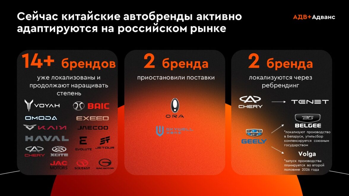 Со стороны предложения продолжается развитие локализации. Более 14 китайских брендов уже реализуют или планируют углубление производственных процессов в России и союзных юрисдикциях. Это становится не просто фактором оптимизации затрат, а условием долгосрочного присутствия.