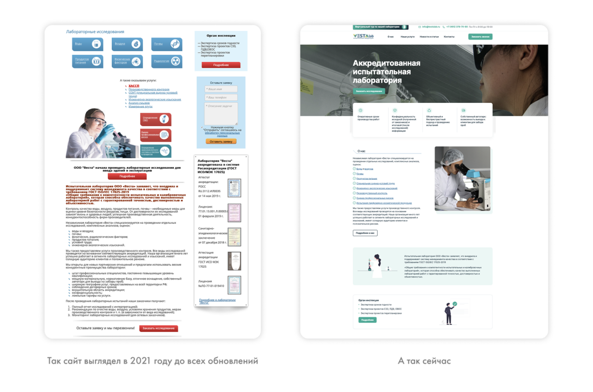Мы сфокусировались на развитии информационного раздела сайта. Регулярно публиковали полезные статьи из области лабораторных исследований: от объяснений санитарных норм до рекомендаций по снятию проб воды.