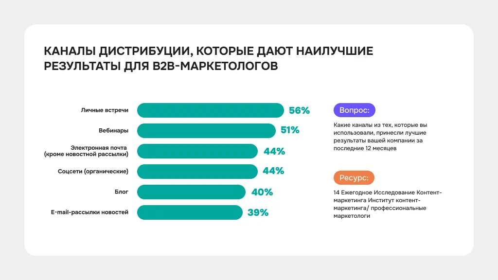 Каналы дистрибуции контента в B2B маркетинге, которые показали наилучшие результаты