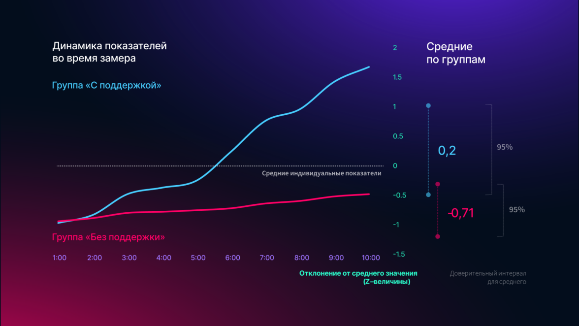 Наш эксперимент наглядно показал, насколько сильно поддержка близких влияет на психоэмоциональное состояние людей. Бегуны с поддержкой чувствовали большую мотивацию, у них был ниже уровень стресса, а по мере приближения к старту у них возрастала спортивная злость и финишное ускорение. В контексте Года семьи результаты нашего эксперимента могут стать ценными инсайтами для тех, кто изучает социальные отношения и их влияние. Поддержка близких играет значительную роль в жизни каждого, а теперь мы оцифровали это и можем показать на числах эту ценность на примере бегунов.