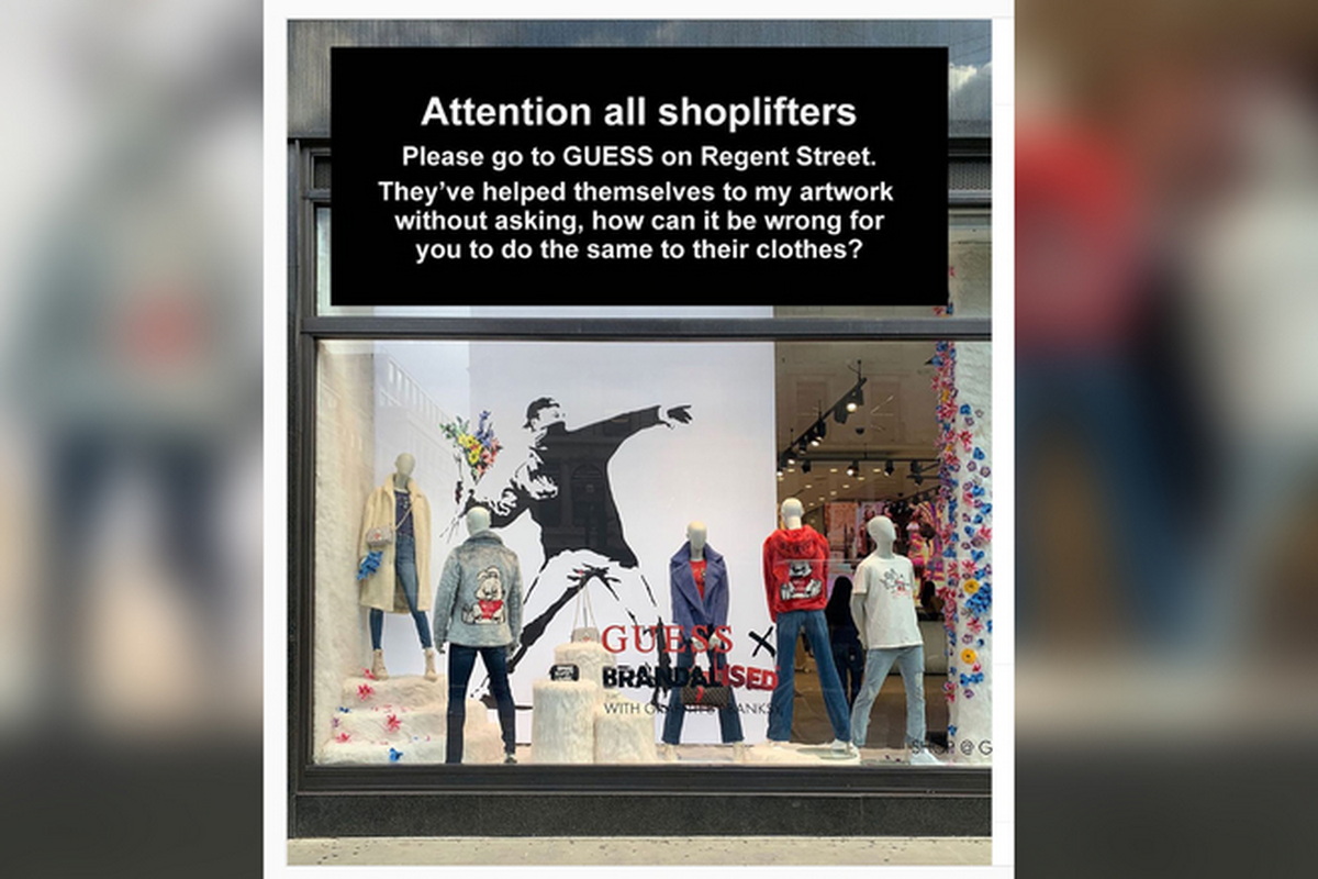 В соцсетях Бэнкси опубликовал пост с предложением фанатам украсть что-то из этого магазина Guess.