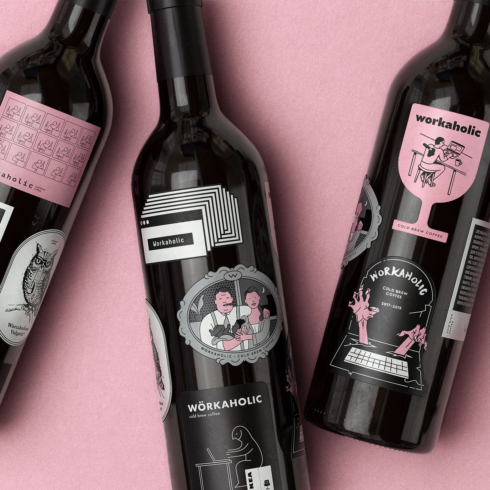Workaholic — колд-брю от московской кофейни Cosmic Latte. Это насыщенный напиток с высоким содержанием кофеина, идеальный для людей, которые много работают. Кофе продается исключительно в винных бутылках и пивных банках, а упаковку украшают целых 10 этикеток вместо одной. Ведь настоящий трудоголик, как и алкоголик — тот, кто никогда не может вовремя остановиться.