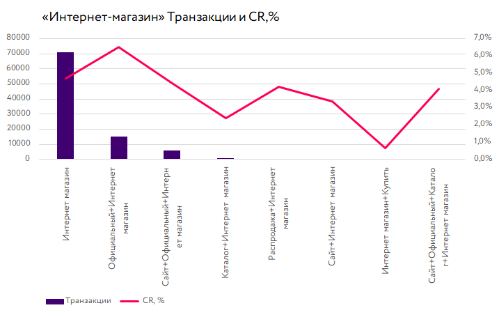 Абсолютными лидерами по количеству транзакций и проценту конверсий являются добавки «интернет-магазин» и «сайт» — мы уже упоминали о важности онлайн-покупок.