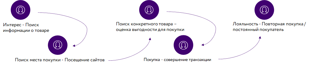 Для fashion-сегмента характерен короткий цикл продаж и путь пользователя можно представить в таком виде: