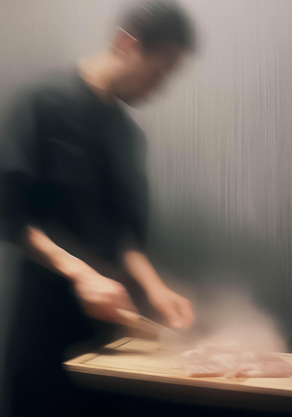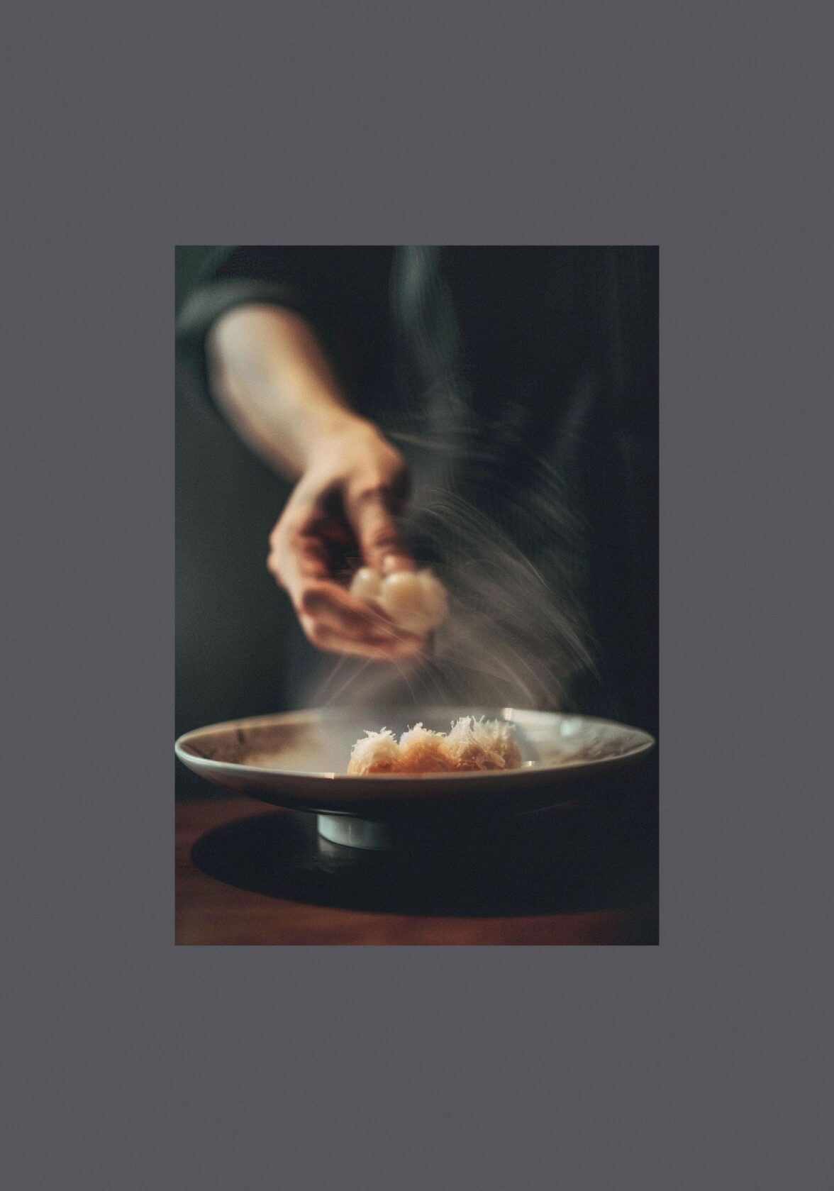 Изображения построены по принципу размытости и частичной абстракции: видно силуэты поваров, подачу блюд, отражения света —, но лица, детали, чёткость отсутствуют. Картинка как бы вибрирует, создавая ощущение движения, момента, воспоминания.Это не просто стилистический выбор, а продолжение позиционирования: фотографии как визуальные «нацукаши» — намёк на вкус, звук, тепло, а не их прямое воспроизведение.