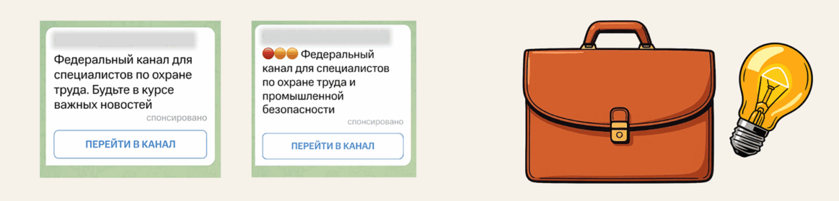 Аудитории: активнее всего подписываются пользователи, которые уже состоят в Telegram‑каналах по охране труда; оптимальный размер источников — каналы с 3–7 тыс. подписчиков. Слишком крупные и разнотемные площадки давали хуже конверсию.