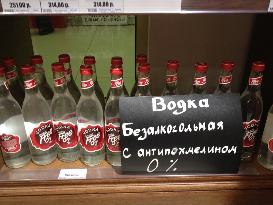 Достаточно давно отмечены попытки выпускать «безалкогольную водку», как несерьёзные — в виде первоапрельских розыгрышей, так и вполне реальные. Часть примеров — это «фан-продукция» для «шуток-приколов», как безалкогольный напиток «Vodka Alcohol Free со вкусом водки»
