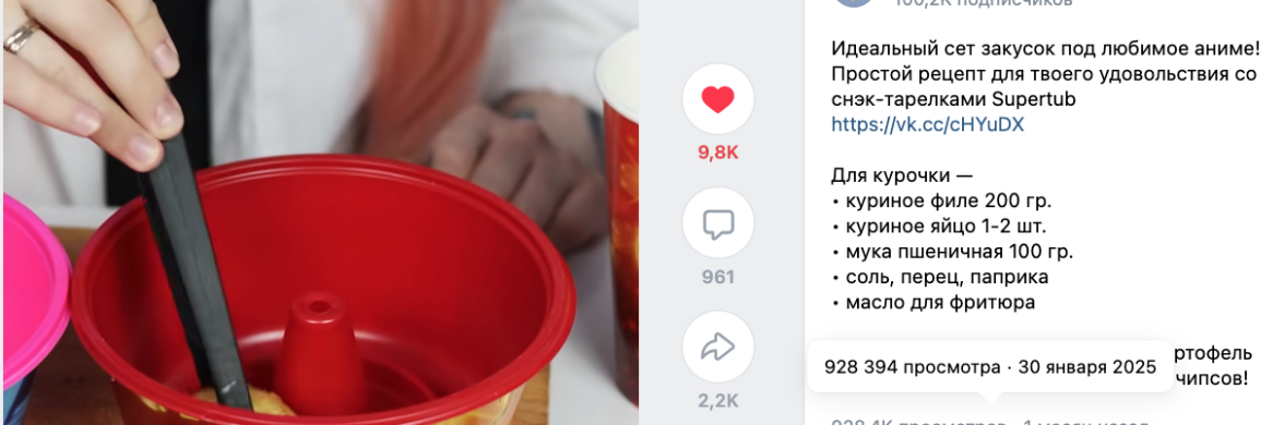Любой предприниматель хотя бы раз задумывался о продвижении своего продукта через блогеров, но не каждый был готов ко всем этапам кампании — начиная от поиска инфлюенсеров и заканчивая подачей отчетности в ЕРИР (Единый реестр интернет-рекламы). Производитель снэк-тарелок Supertub поставил перед нами не самую простую задачу. Продукт еще не был знаком аудитории, и было непонятно, как потенциальные покупатели отреагируют на такую необычную посуду.