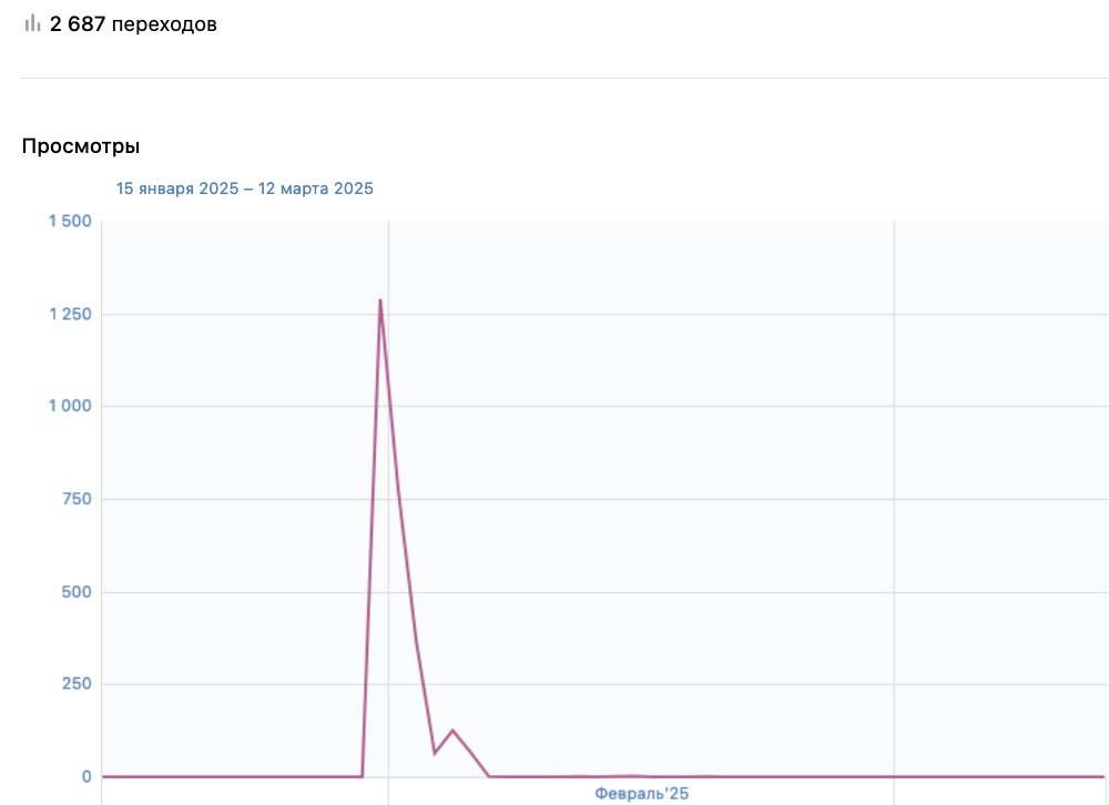 А публикация у Telegram-блогера собрала 2 687 переходов. Пик был зафиксирован в первые 2–3 дня после выхода публикации.