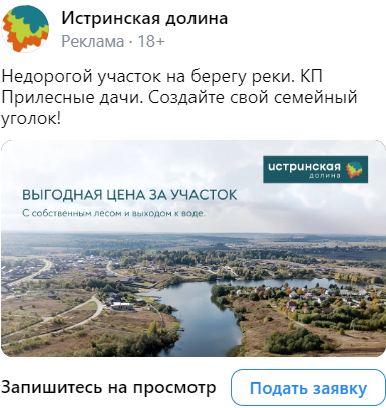 Привлечение целевых лидов для покупки земельных участков в коттеджных поселках компании с помощью VK ADS.