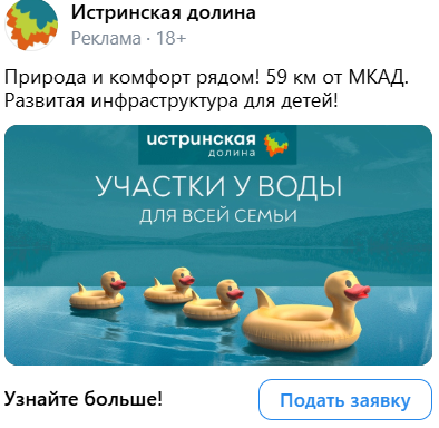 Для каждого поселка были разработаны 6 креативов, в которых сделали акцент на:
