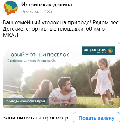 Самыми эффективными оказались креативы с пейзажами и призывами к созданию семейного уголка.