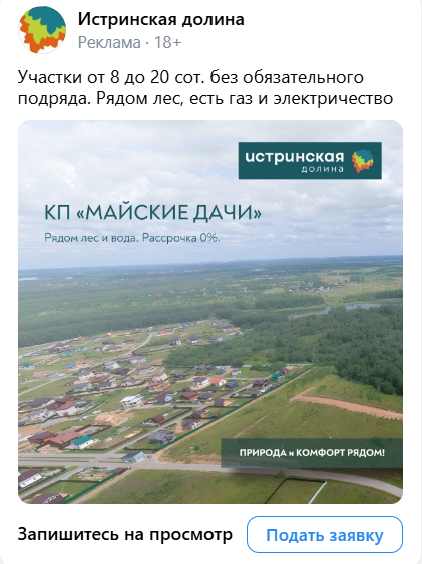 Привлечение целевых лидов для покупки земельных участков в коттеджных поселках компании с помощью VK ADS.