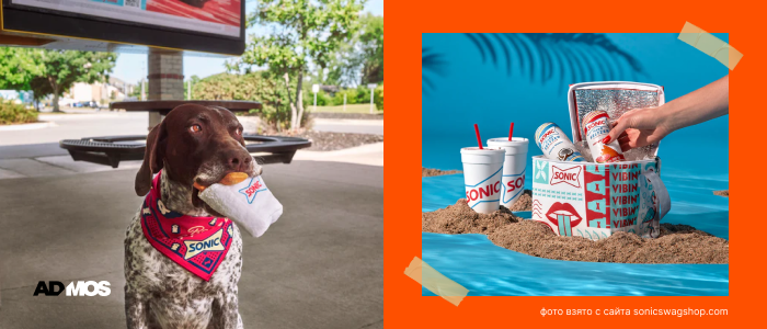 В магазине сувениров Sonic Drive in, где официанты катаются на роликах, доступны три коллекции сувениров. Летняя коллекция включает в себя гавайскую рубашку с принтом фламинго, футболки, термокружки и даже надувной матрас. Зимняя предлагает пижамы, мягкие тапочки и носки. Третья предназначена для домашних животных и предлагает костюмы для собак, банданы, кепки и игрушки в виде культовых предметов из меню.