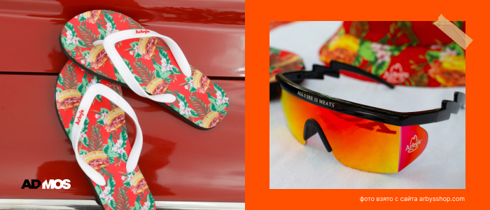 В мерчшопе Arby’s также можно найти футболки, майки, вьетнамки и купальники, а также солнечные очки с оригинальными дужками. Все эти товары доступны на виртуальных полках магазина для поклонников бренда Arby’s.