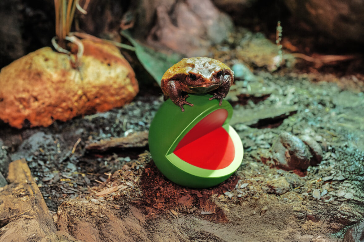 Команда бренда решила, что лучший способ победить внутреннюю жабу — приручить и подружиться с ней. Так сервис взял под опеку двух жабок московского зоопарка — Бурую и Ага. В террариуме, где живут земноводные, расположили логотип бренда — ярко-зеленого сплита, похожего на арбуз. Кажется, новый сосед понравился жабками!
