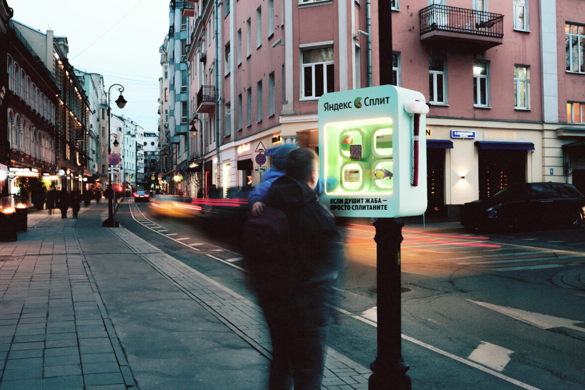 Чтобы экстренно прийти на помощь в случае нападения жабы, Яндекс Сплит разместил в Москве специальный SOS-бокс. В случае, когда очень хочется что-то купить, но внутренняя жаба не позволяет, нужно воспользоваться спасительным боксом — просто сплитануть.