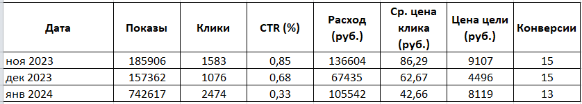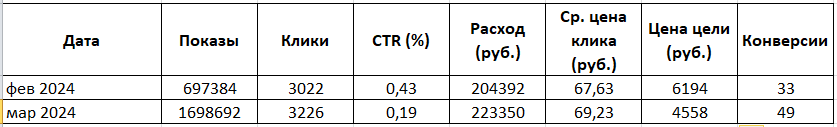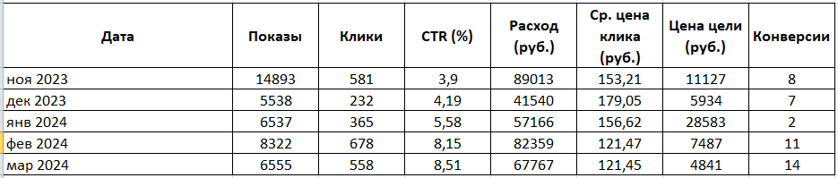 Если говорить кратко, то на этапе № 1 мы отключили то, что не работало. Например, это ключевые фразы на Поиске. Они только тратили деньги клиента, но ничего не приносили. Ещё одним примером станет автотаргетинг.