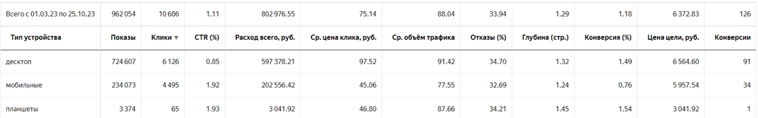 Кроме того, мы выяснили, что конверсия на десктопных устройствах выше, чем на мобильных: