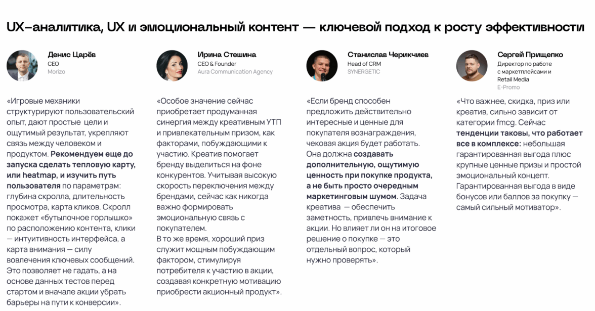 В исследовании представлены рекомендации по повышению эффективности чековых промо, включая переход на сертифицированные антифрод-системы, адаптацию промосайтов под мобильную аудиторию, интеграцию CDP-решений для анализа данных, внедрение триггерной коммуникации и юридическую настройку процессов обработки персональных данных. Также в отчет включен чек-лист для самостоятельной оценки действующих акций.