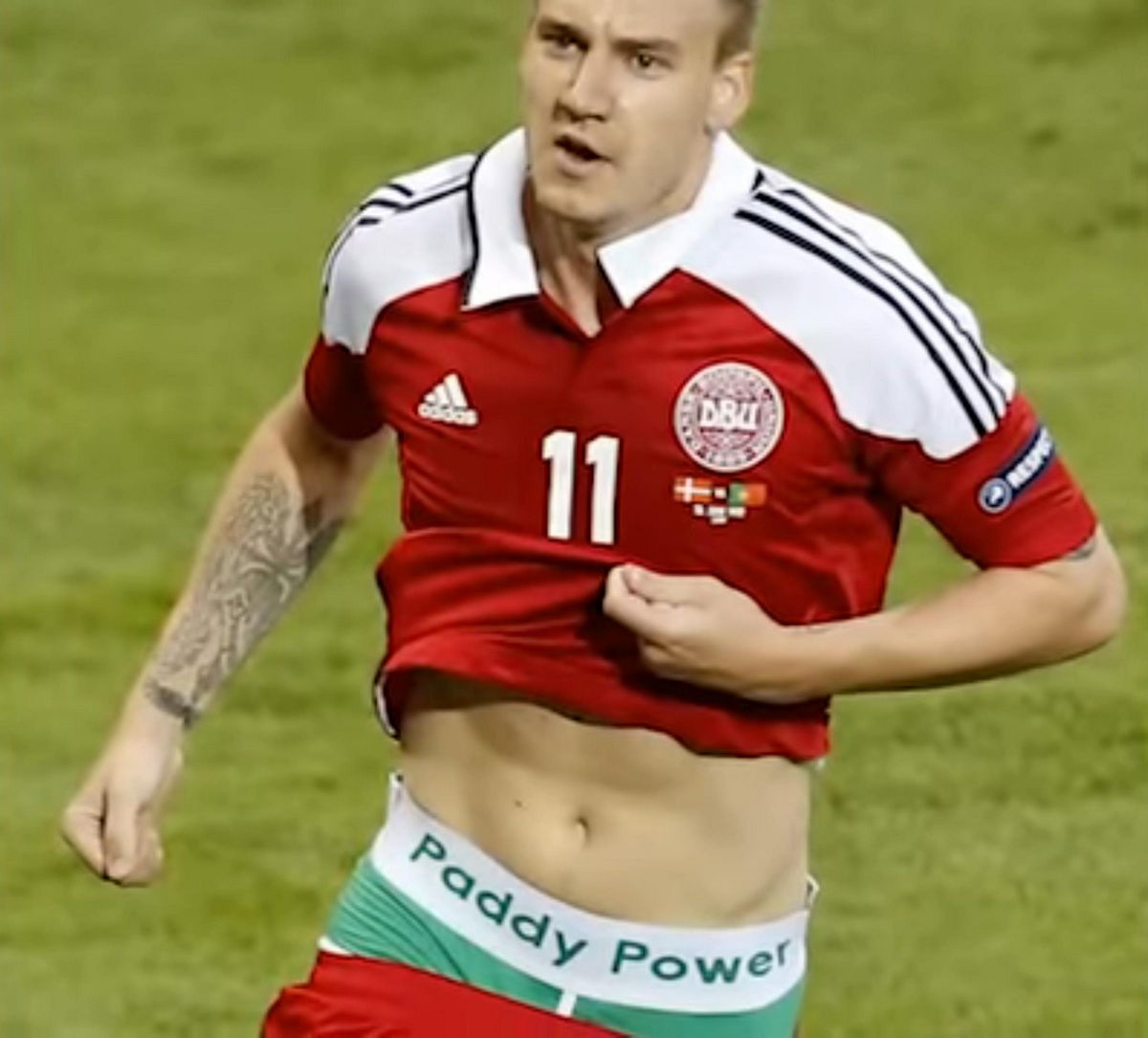 На чемпионате Европы по футболу 2012 года игрок сборной Дании Никлас Бендтнер, забив второй мяч в ворота команды Португалии, приподнял майку, чтобы всем были видны его трусы, на которых красовалось названия ирландской беттинговой компании. По правилам УЕФА, футболисты не могут демонстрировать во время турнира надписи рекламного характера (за исключением официальной рекламы на футбольной форме). Бендтнер был оштрафован на $100 тыс. и пропустил следующий матч турнира, но Paddy Power по многочисленным просьбам болельщикам взяла «несправедливый» штраф на себя.
